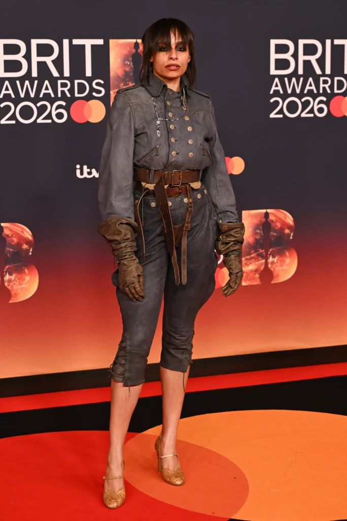 Normally I’m all for how Lola Young wears anything other than a dress to awards shows however this one isn’t quite hitting the mark. The trousers are scales and locks? And the top looks like a graffitied barrel. Maybe there is something I’m missing here…